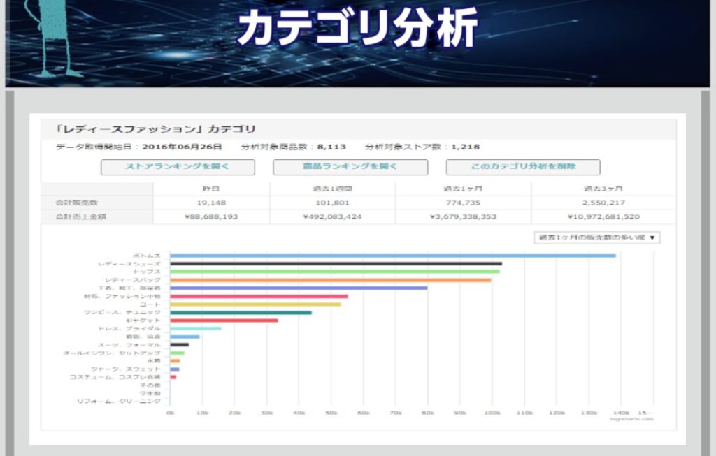 ① 国内EC市場を横断して「売れている商品」がわかる