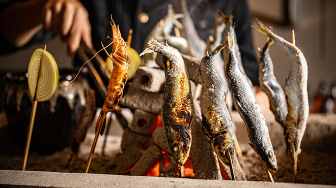 大根やたまごの定番から、創作系の変わり種まで揃い、じっくり煮込まれた旨みたっぷりのおでんが楽しめる。 - 職人技が光る炭火炉端焼き